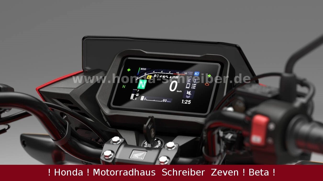 Die CB125F mit CBS Bremse wurde von Grund auf neu gestaltet und hat dabei eine überarbeitete Front- und Heckverkleidung sowie neue LED-Scheinwerfer erhalten, die ihr ein moderneres Erscheinungsbild verleihen. Der neue 4,2-Zoll TFT-Bildschirm ist mit Bluetooth ausgestattet, sodass du Honda RoadSync nutzen kannst, um unterwegs immer auf dem Laufenden zu bleiben.
